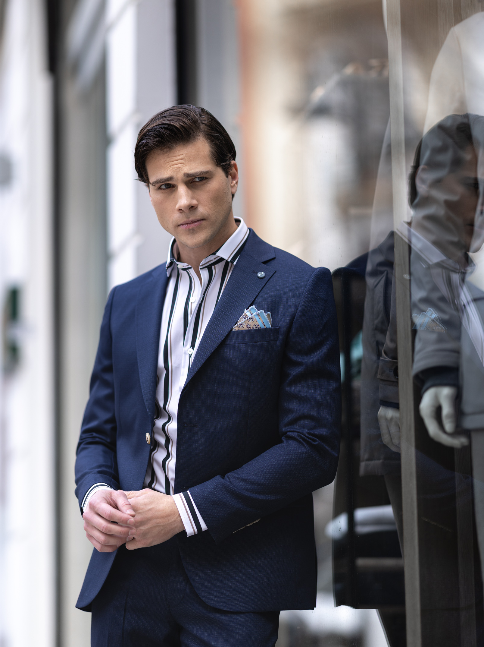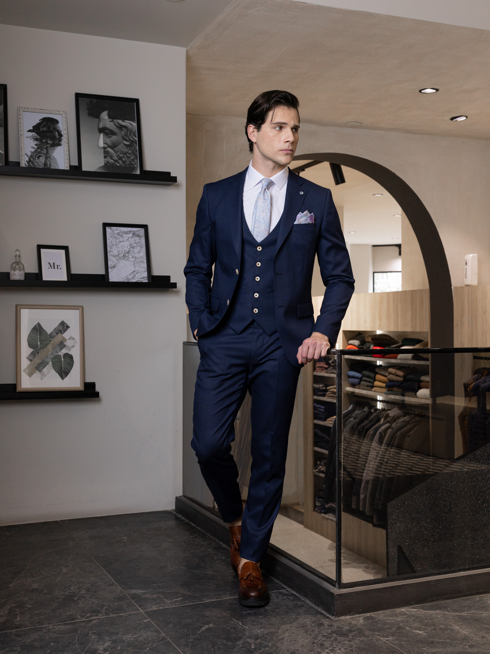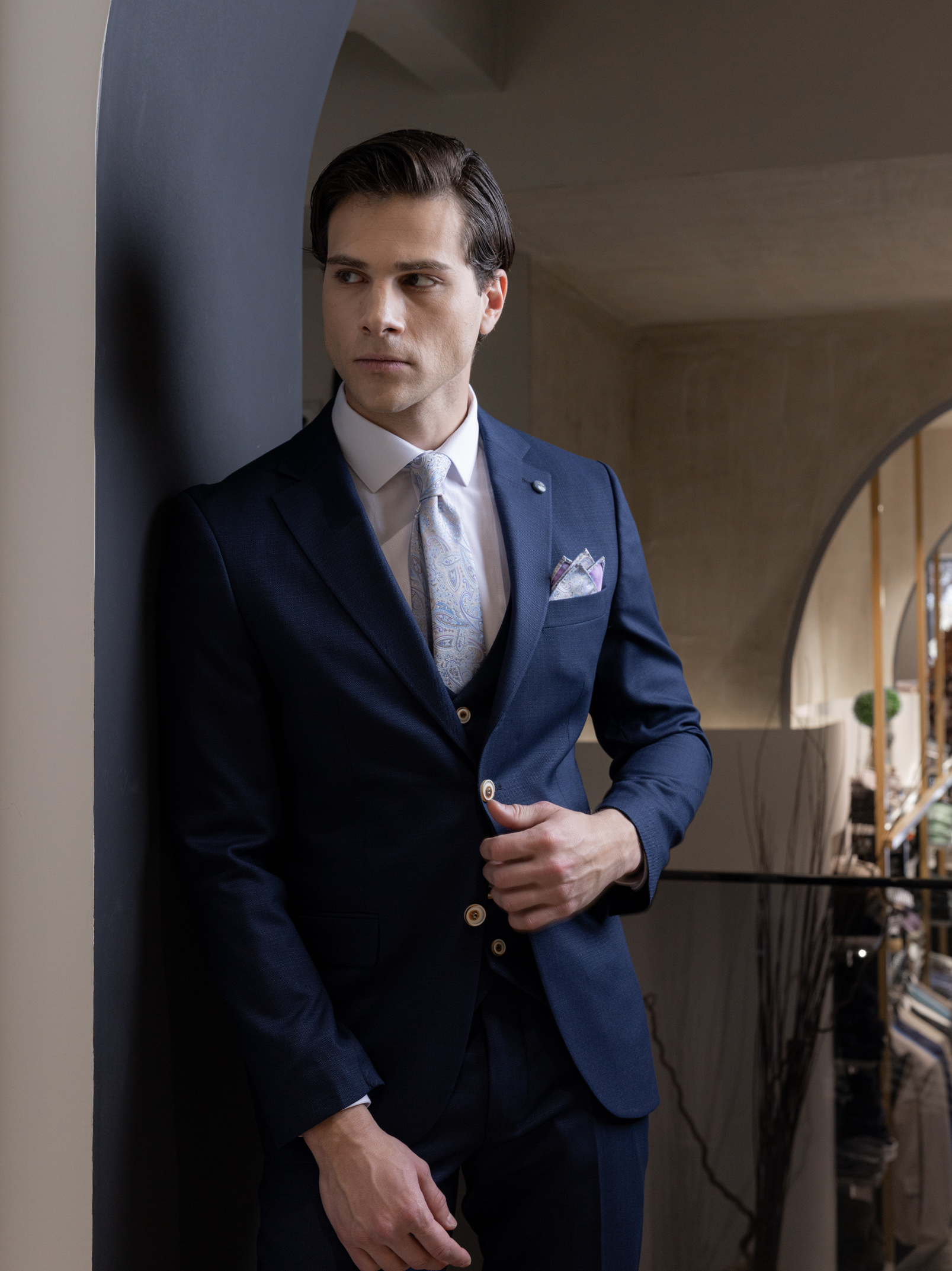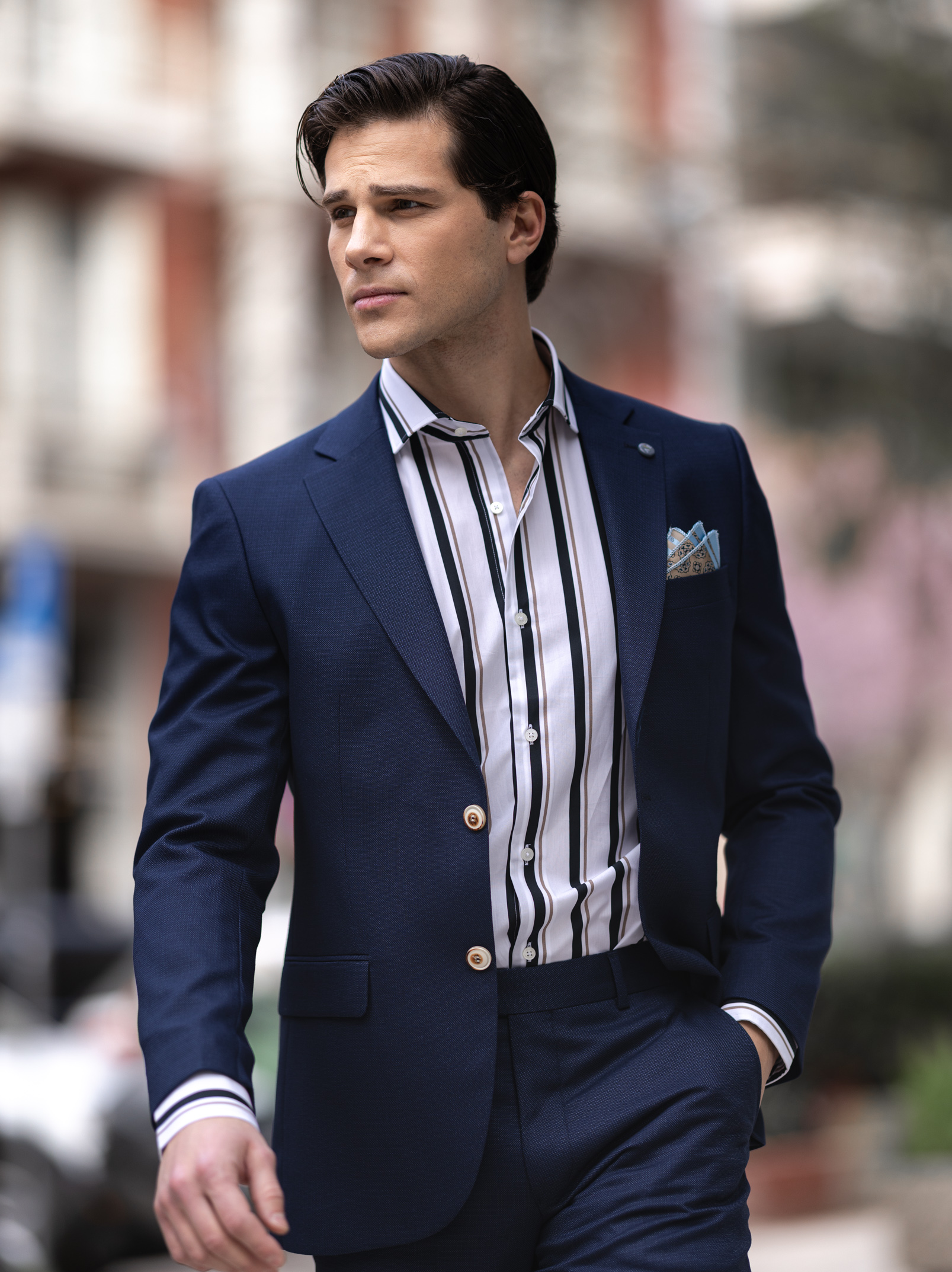Κοστούμι Μπλε Με Ύφανση Slim Fit, ALTER EGO