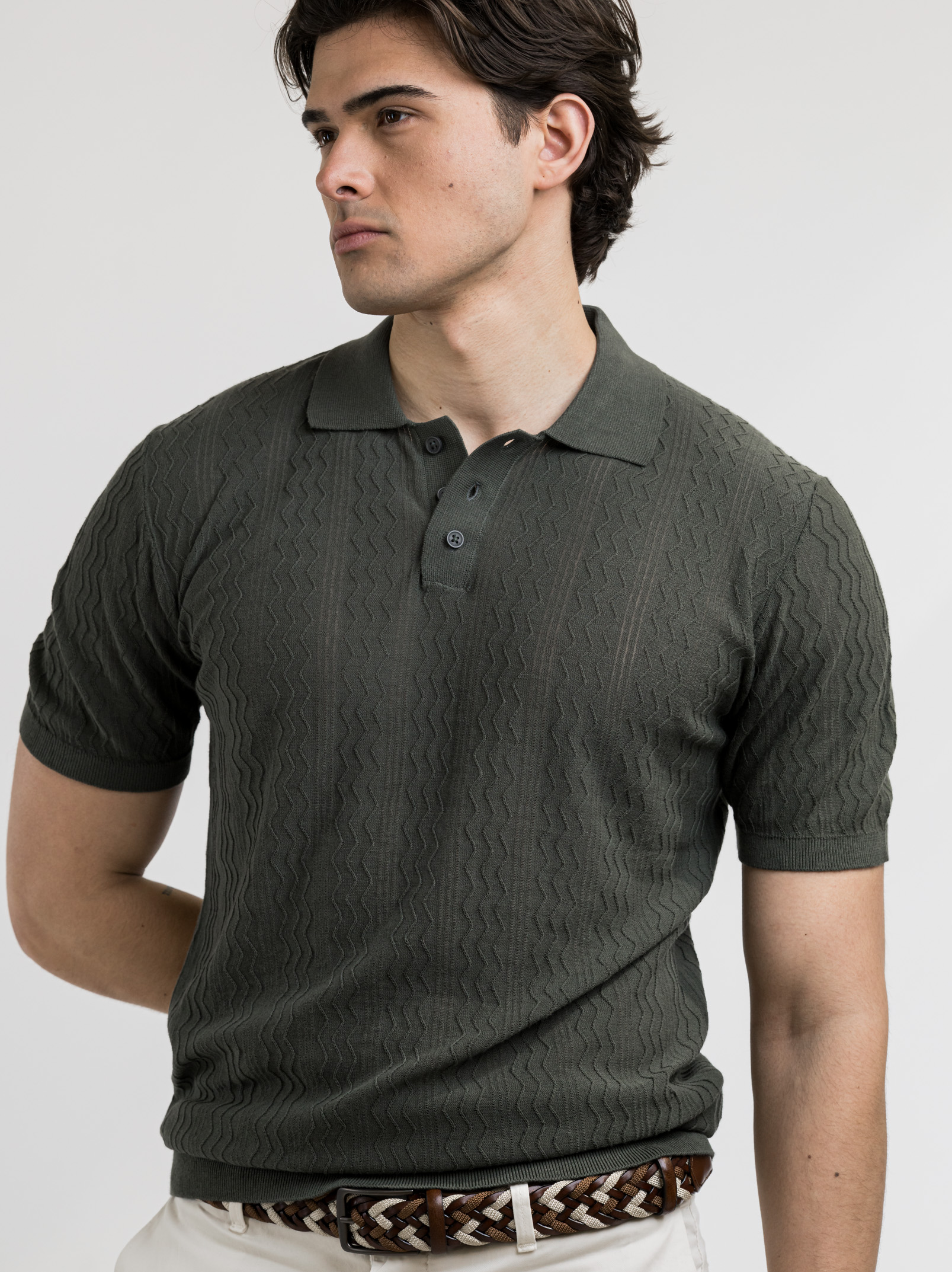 Μπλούζα Πόλο Μερσεριζέ Χακί, YES ZEE