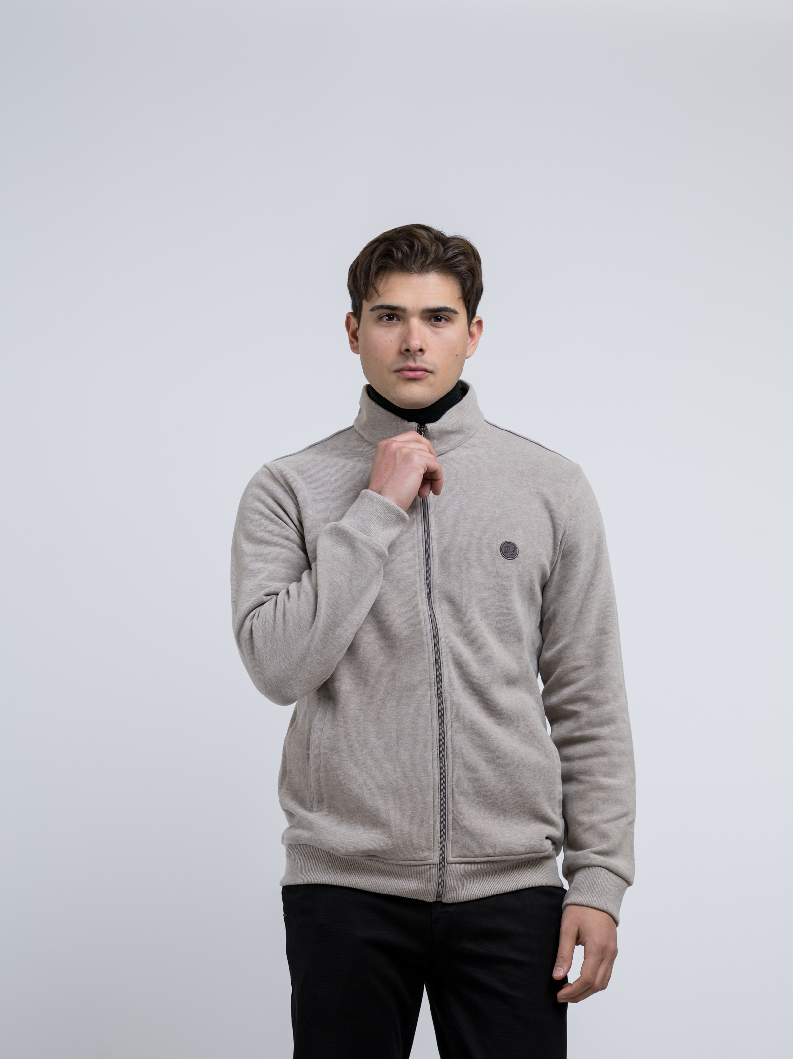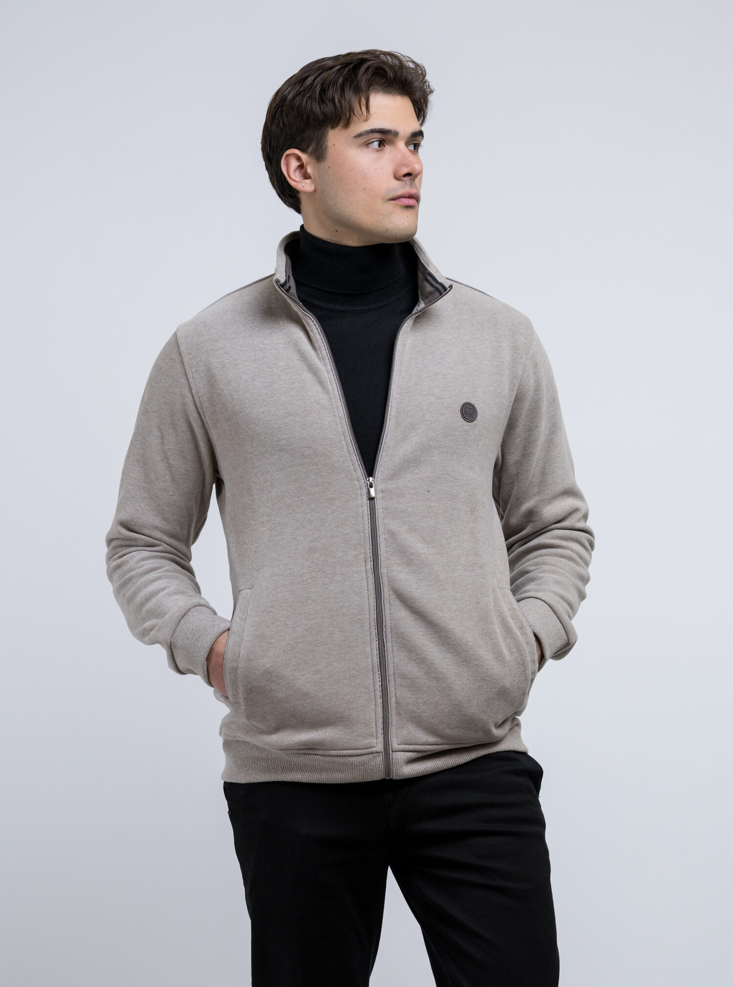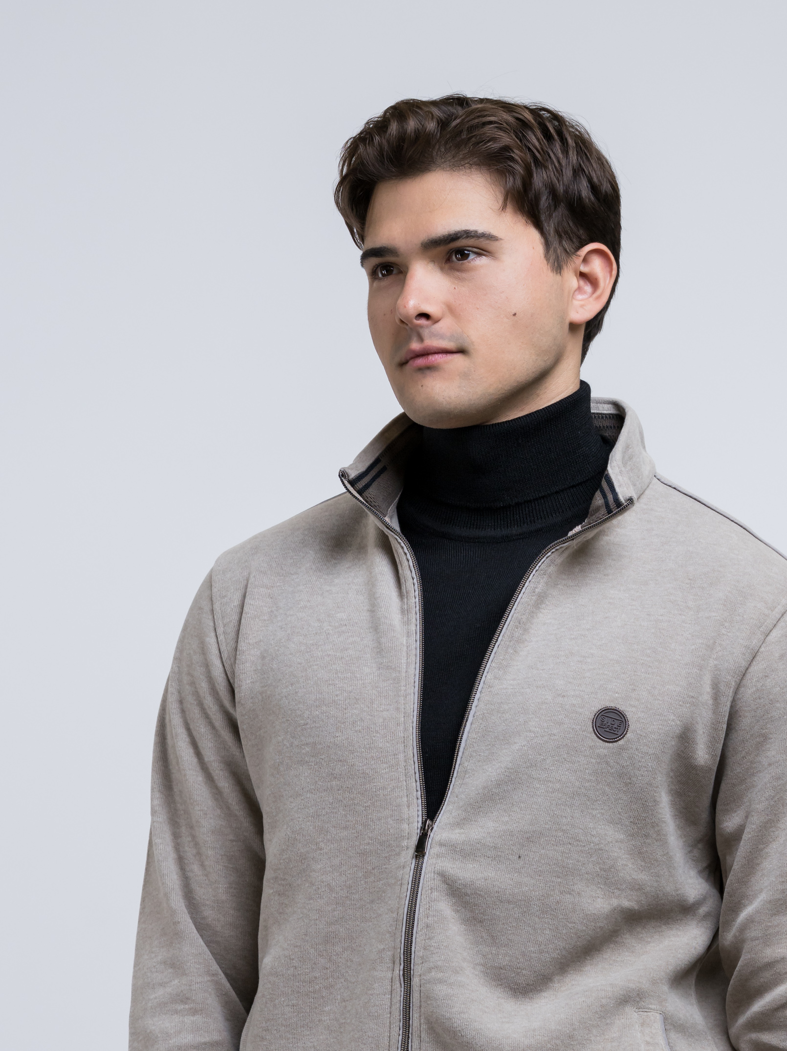 Εκρού ζακέτα με φερμουάρ, διαθέτει τσέπες στο πλάϊ και  logo στο στήθος της εταιρείας SIDE EFFECT.