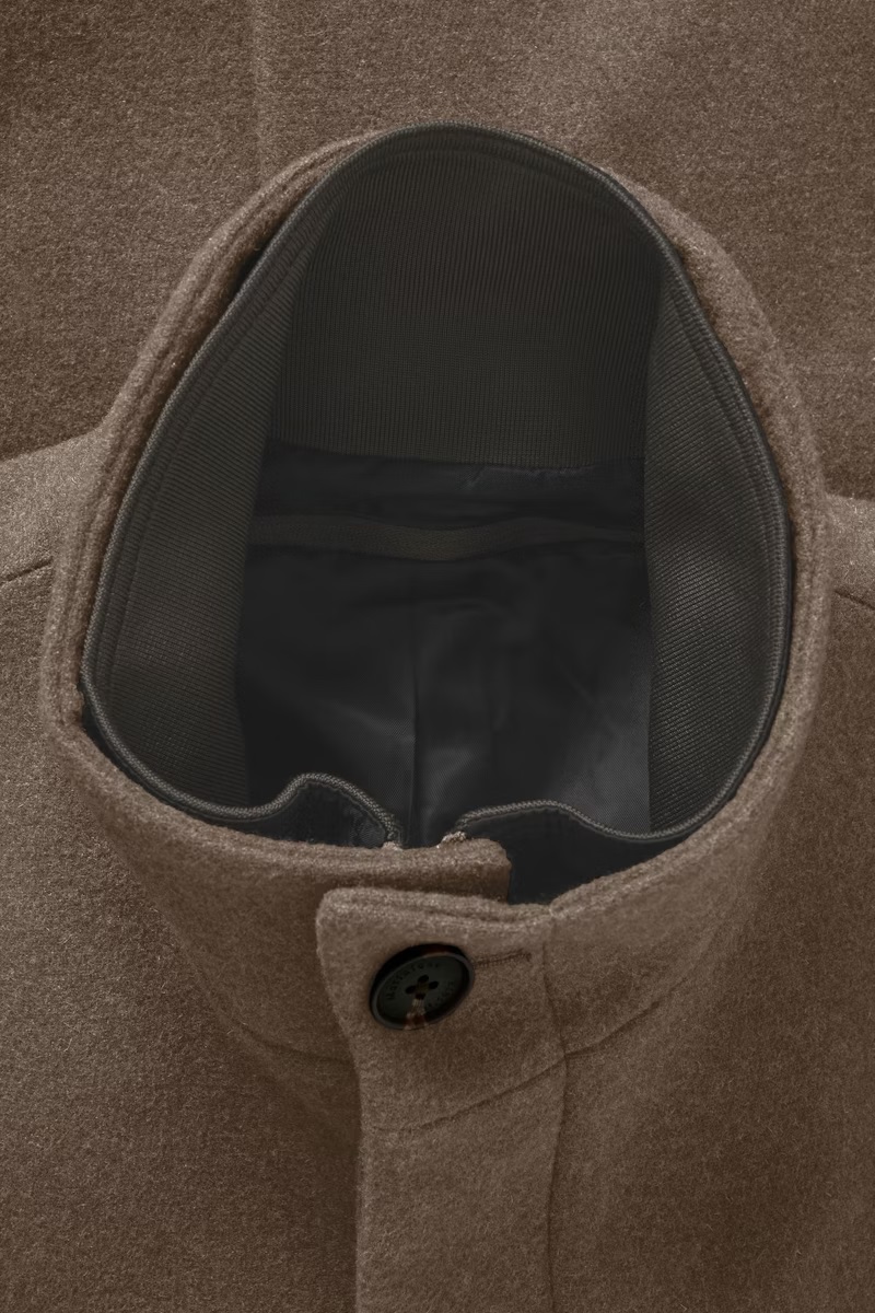 Ταμπά μάλλινο ημίπαλτο με όρθιο γιακά της Δανέζικης εταιρείας MATINIQUE σε στενή γραμμή. Τσέπες στο πλάι και αφαιρούμενη πατιλέτα μπροστά.
