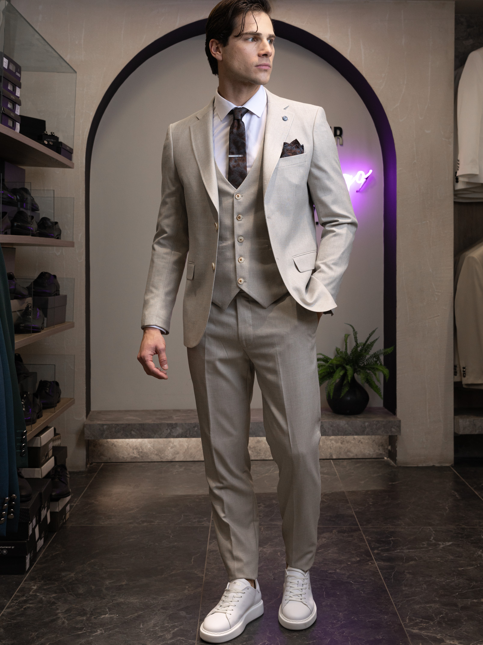 Κοστούμι Σετ Μπεζ Slim Fit, ALTER EGO