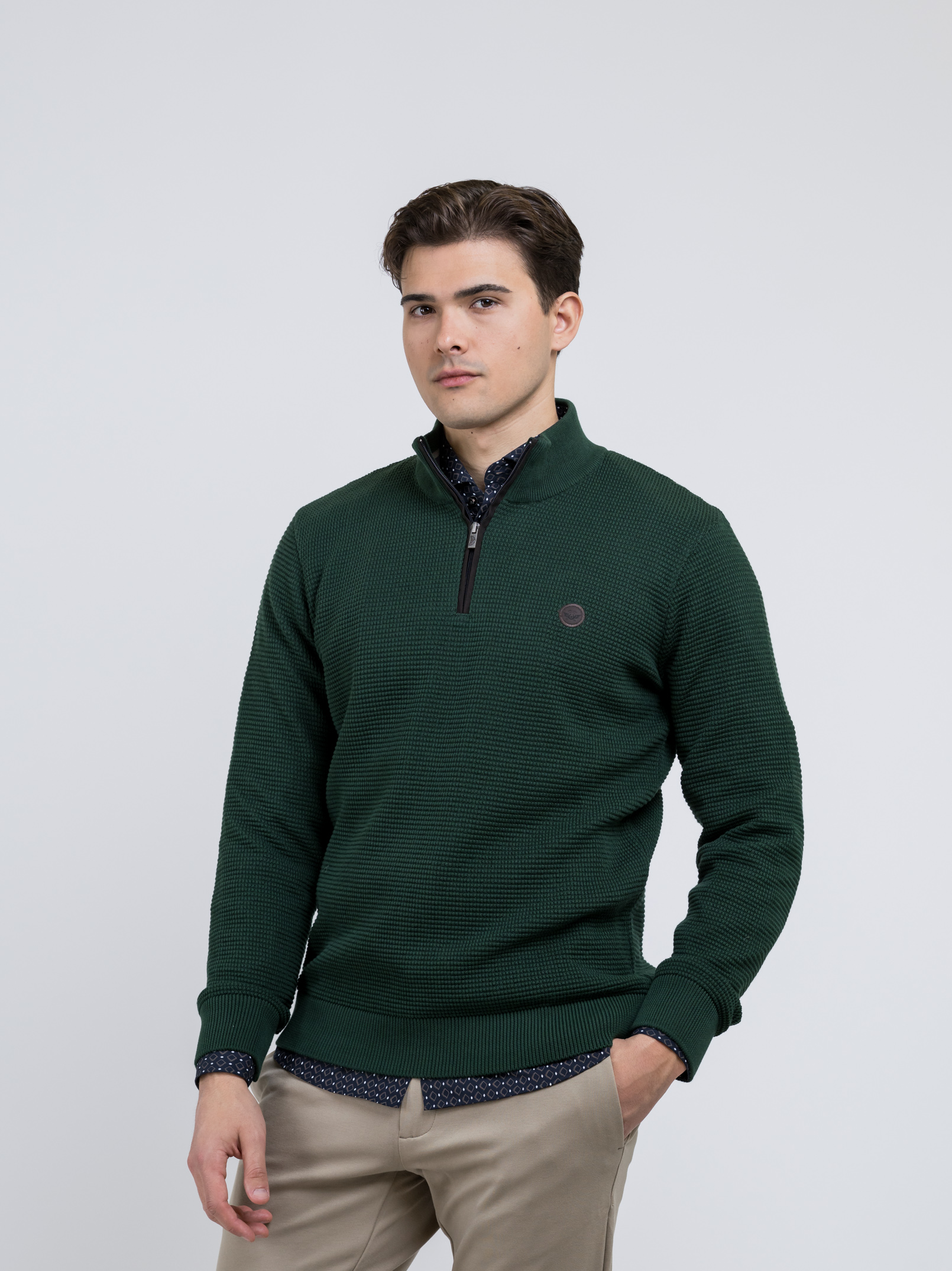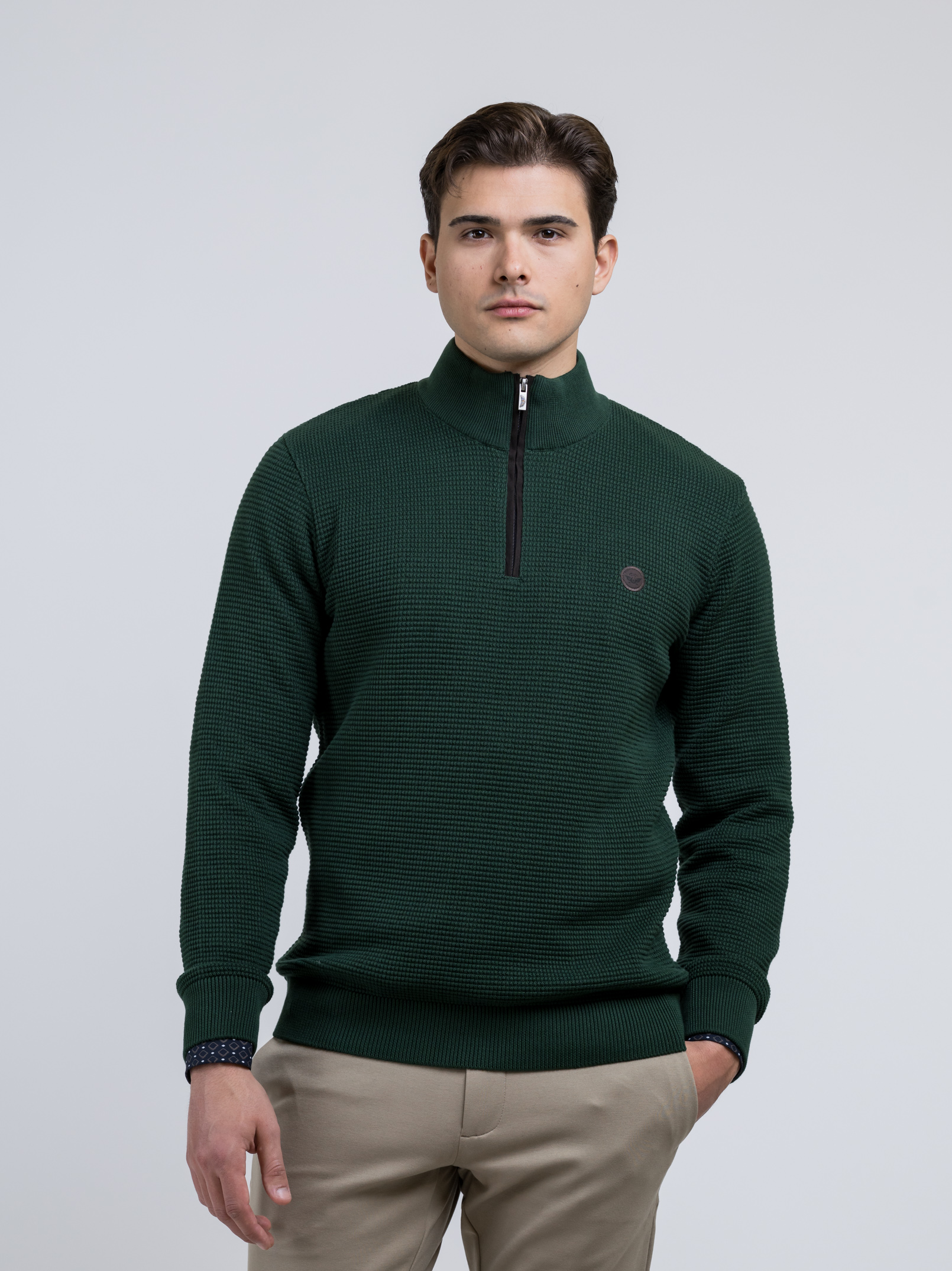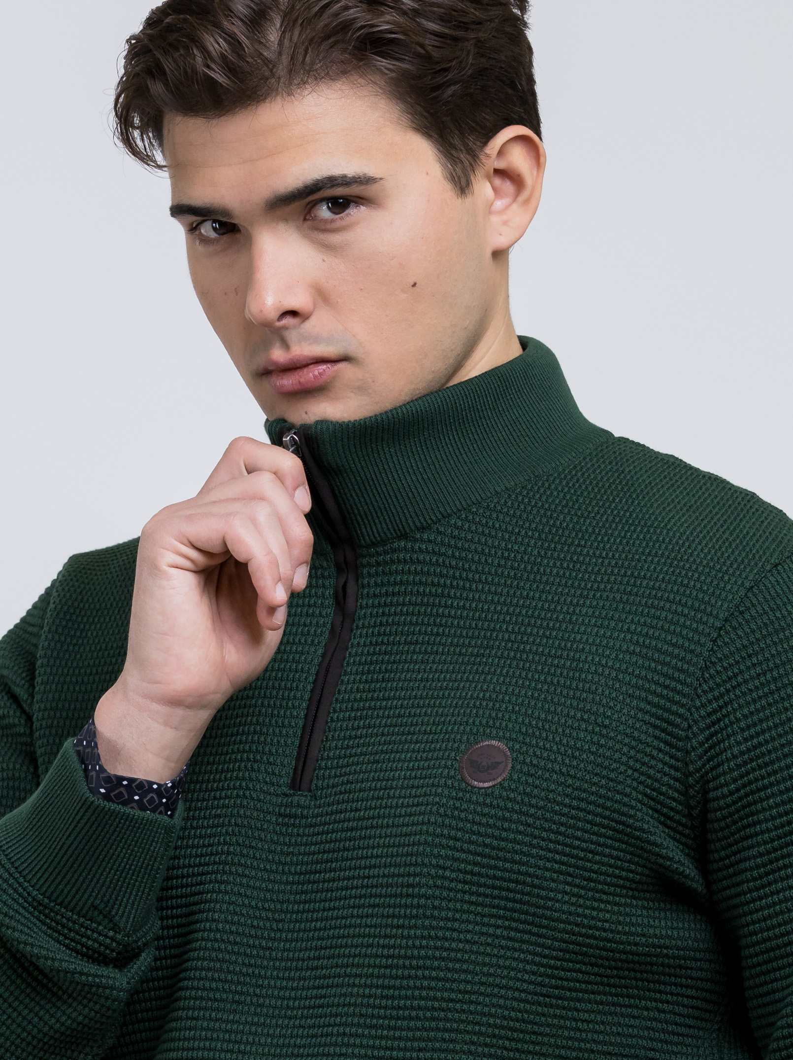 Μπλούζα Λαδί χρώμα με ψηλό γιακά και φερμουάρ της εταιρείας SIDE EFFECT.