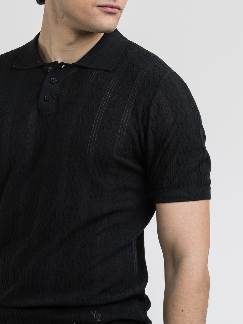 Μπλούζα Πόλο Μερσεριζέ Μαύρη, YES ZEE