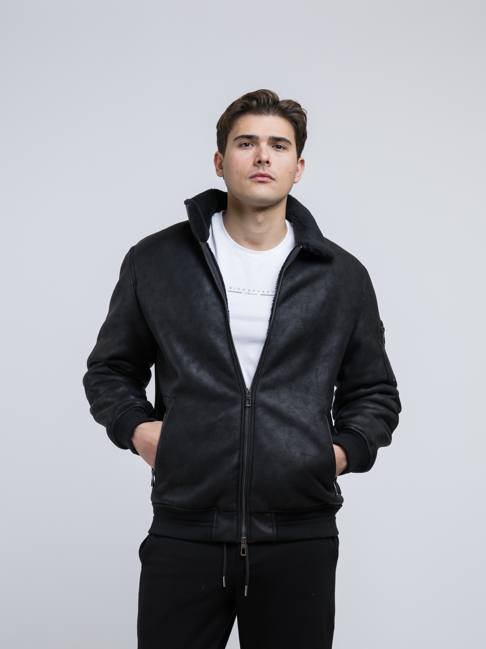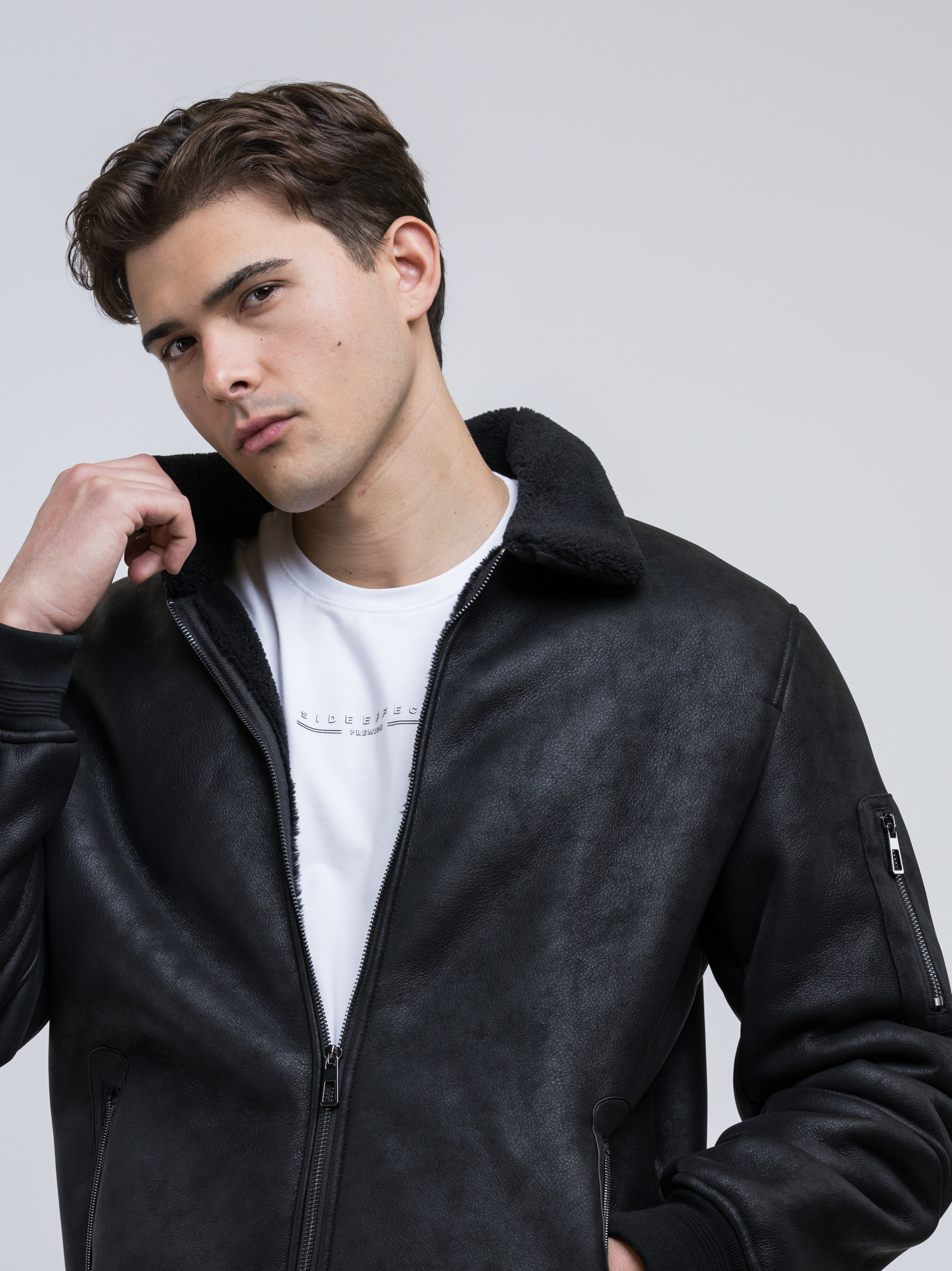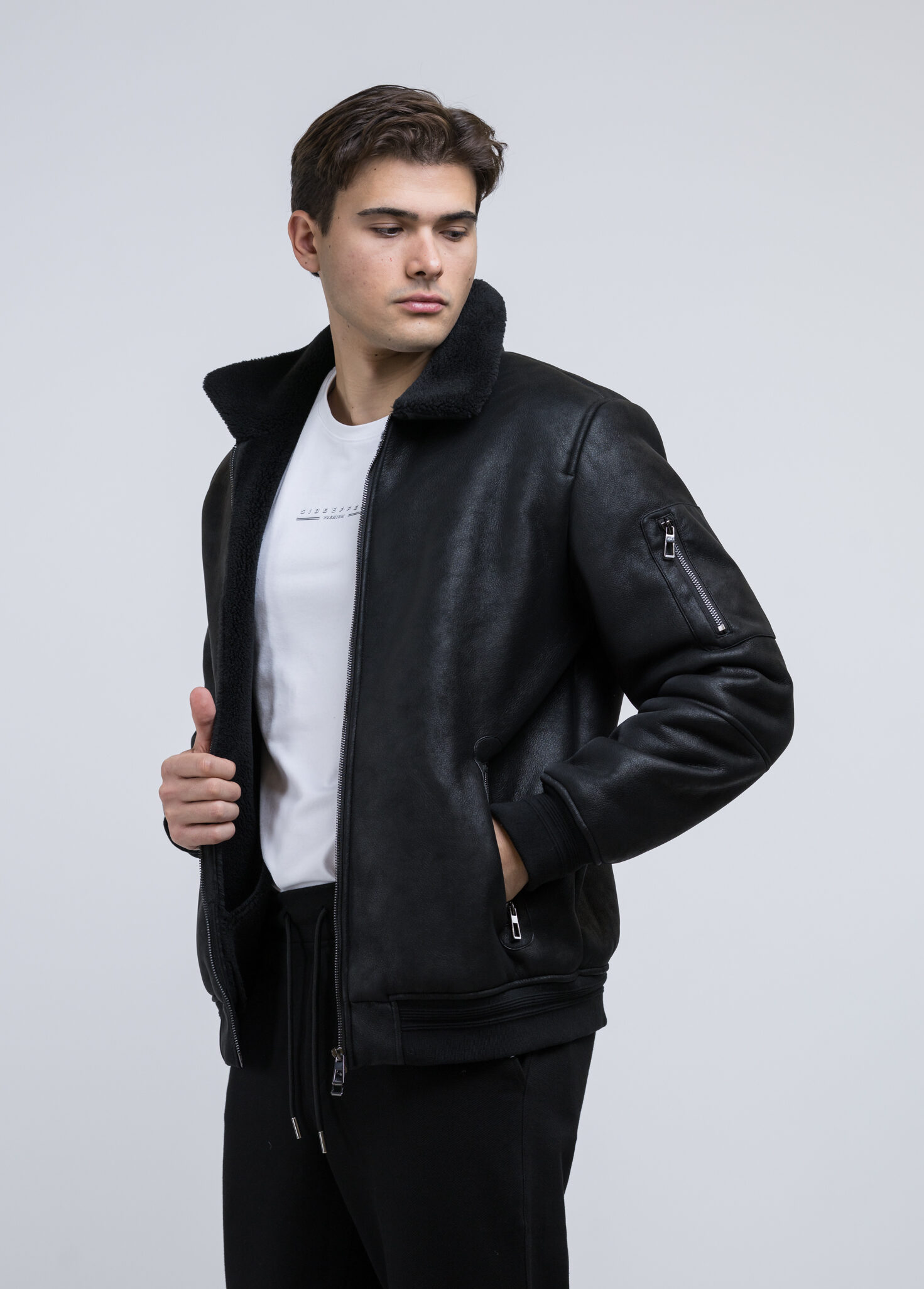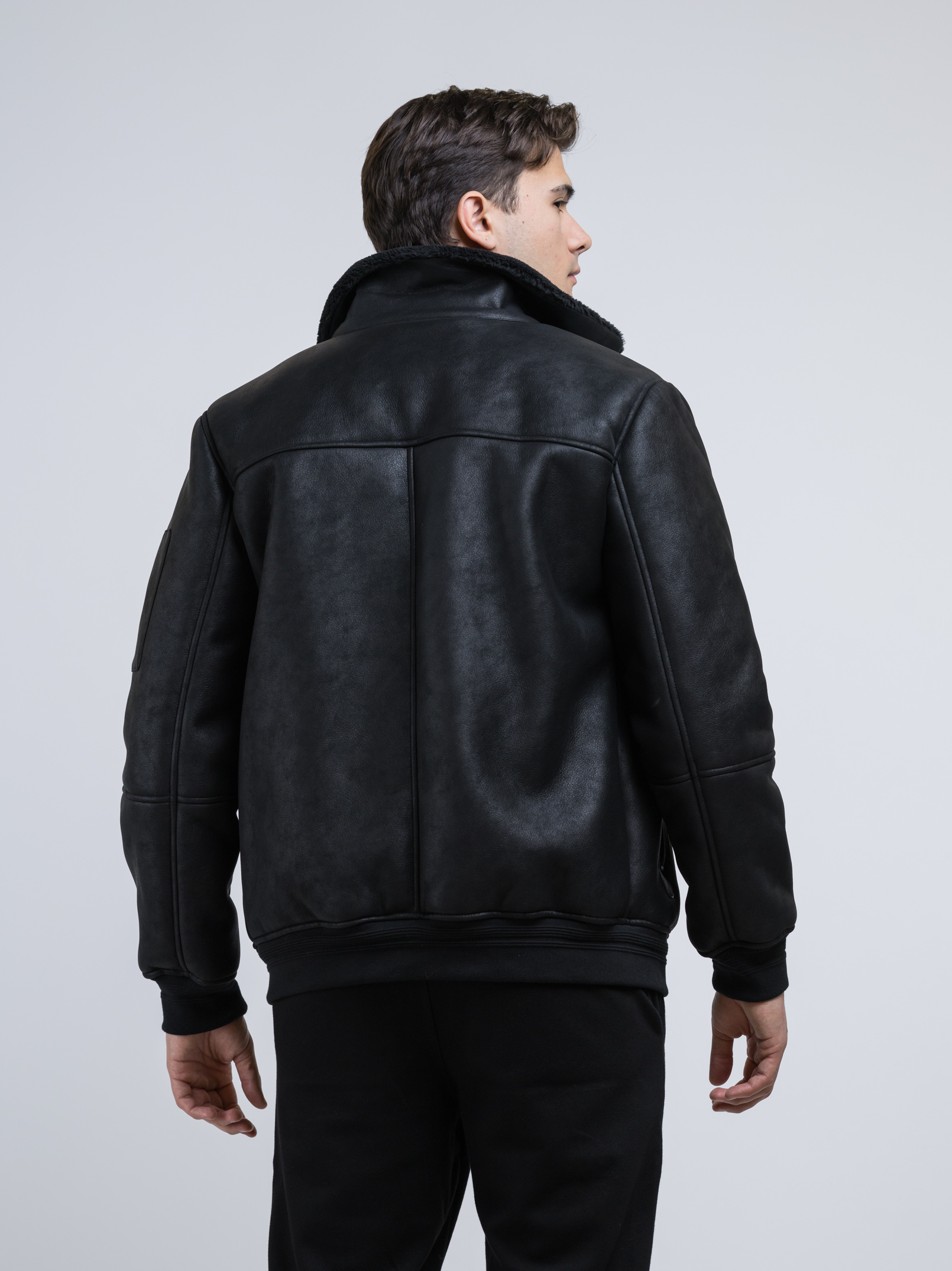 Μαύρο μπουφάν τύπου bomber της Ιταλικής εταιρείας ADIMARI σε  ύφασμα eco μουτόν.