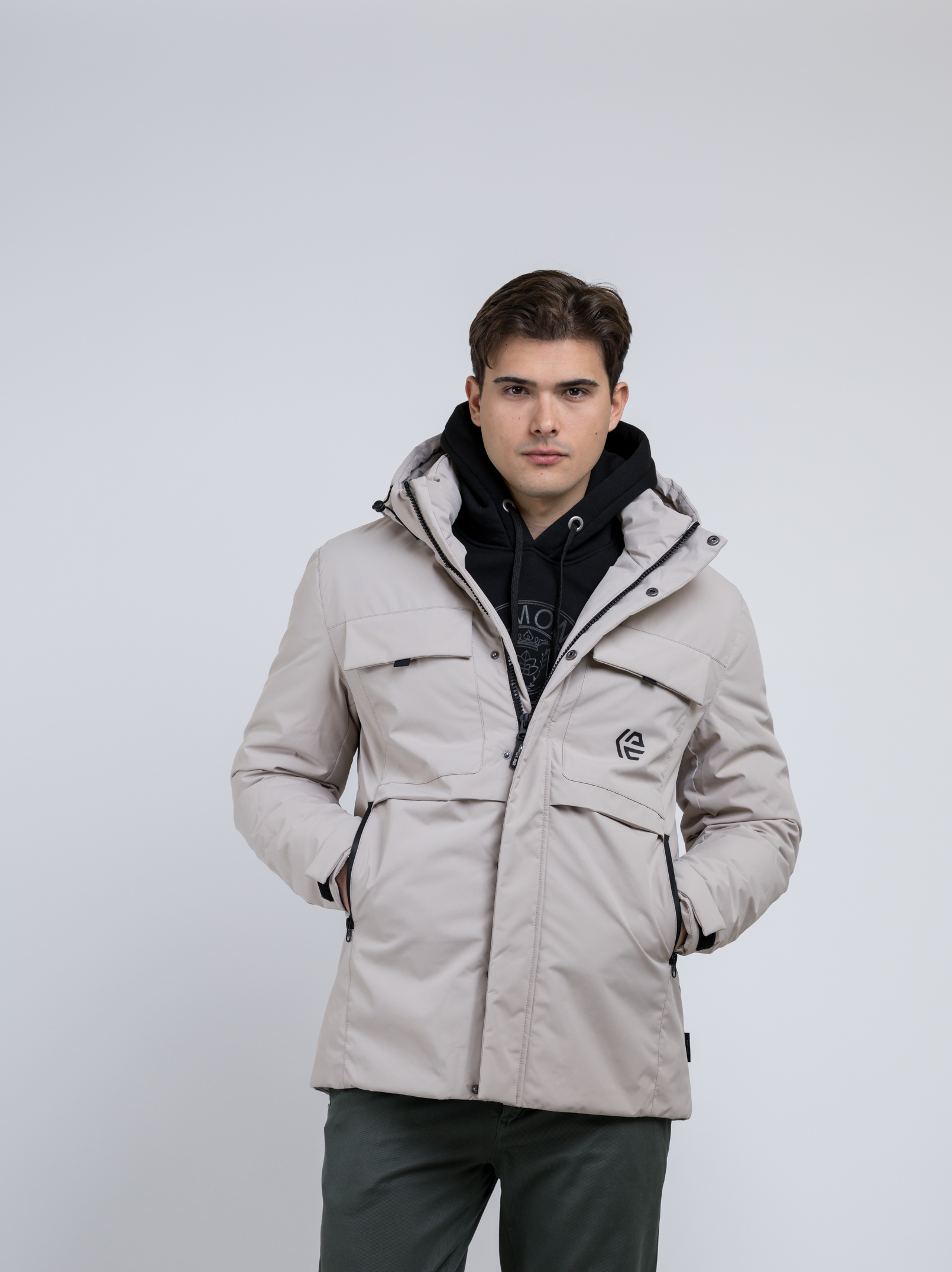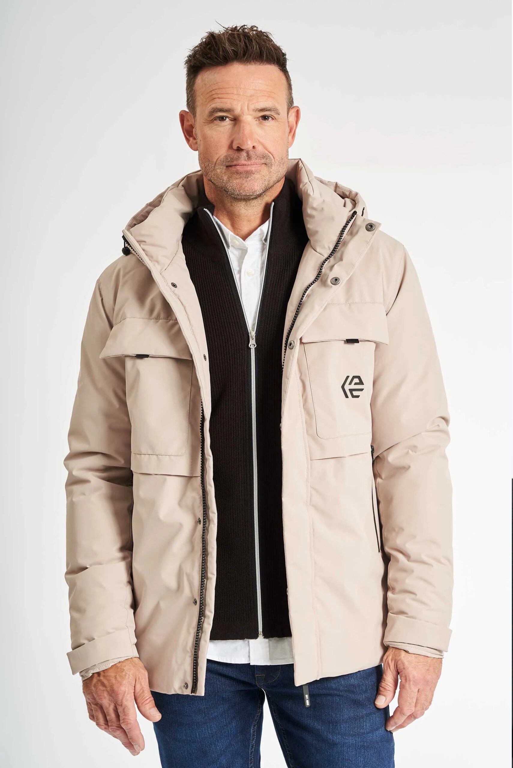 Εκρού σπορ μπουφάν της Δανέζικης εταιρείας INDICODE. Έχει τσέπες στο πλάι και στο στήθος και επένδυση από υαλοβάμβακα. Είναι ένα ιδιαίτερα ζεστό μπουφάν, αδιάβροχο και αντιανεμικό