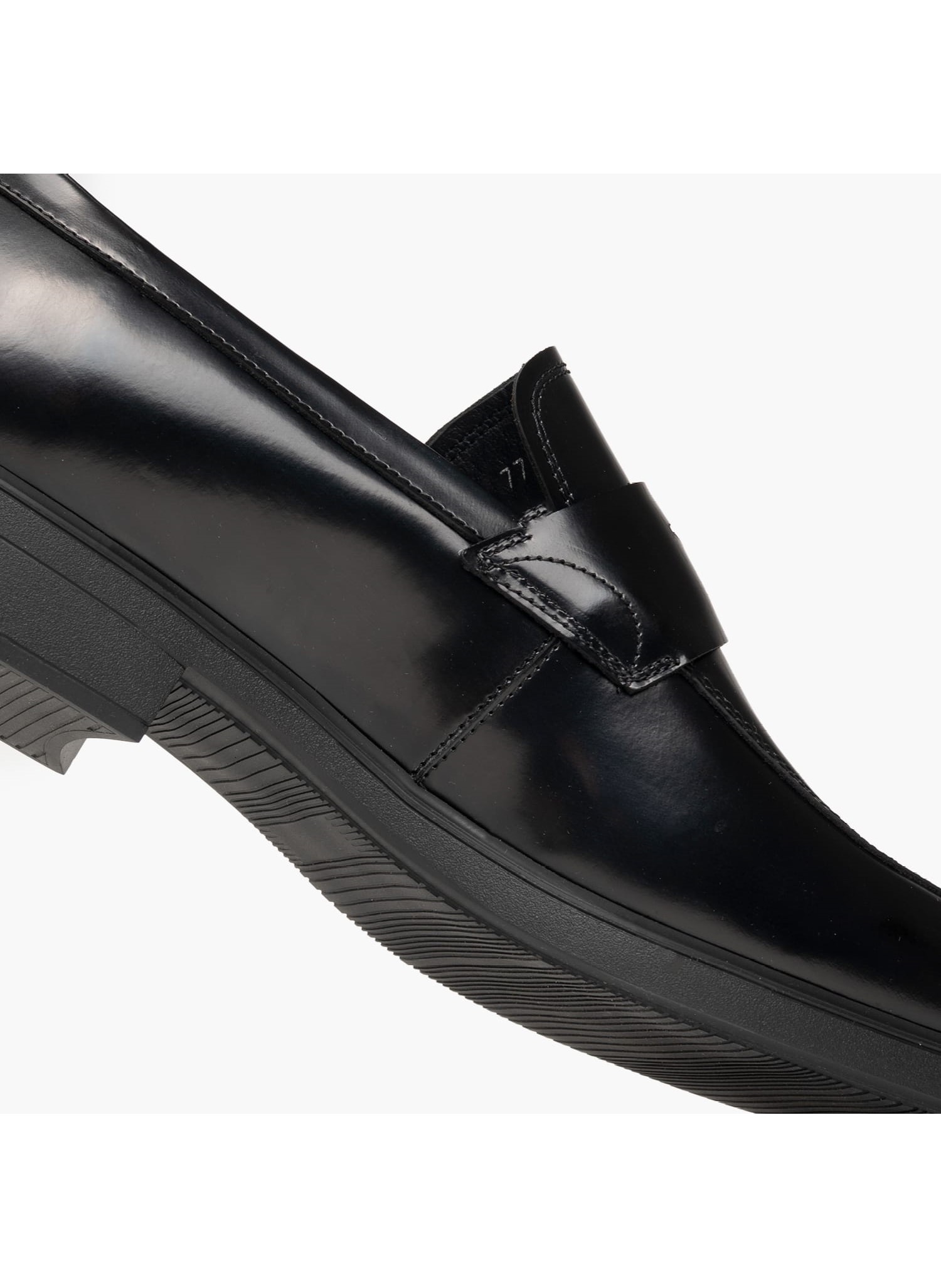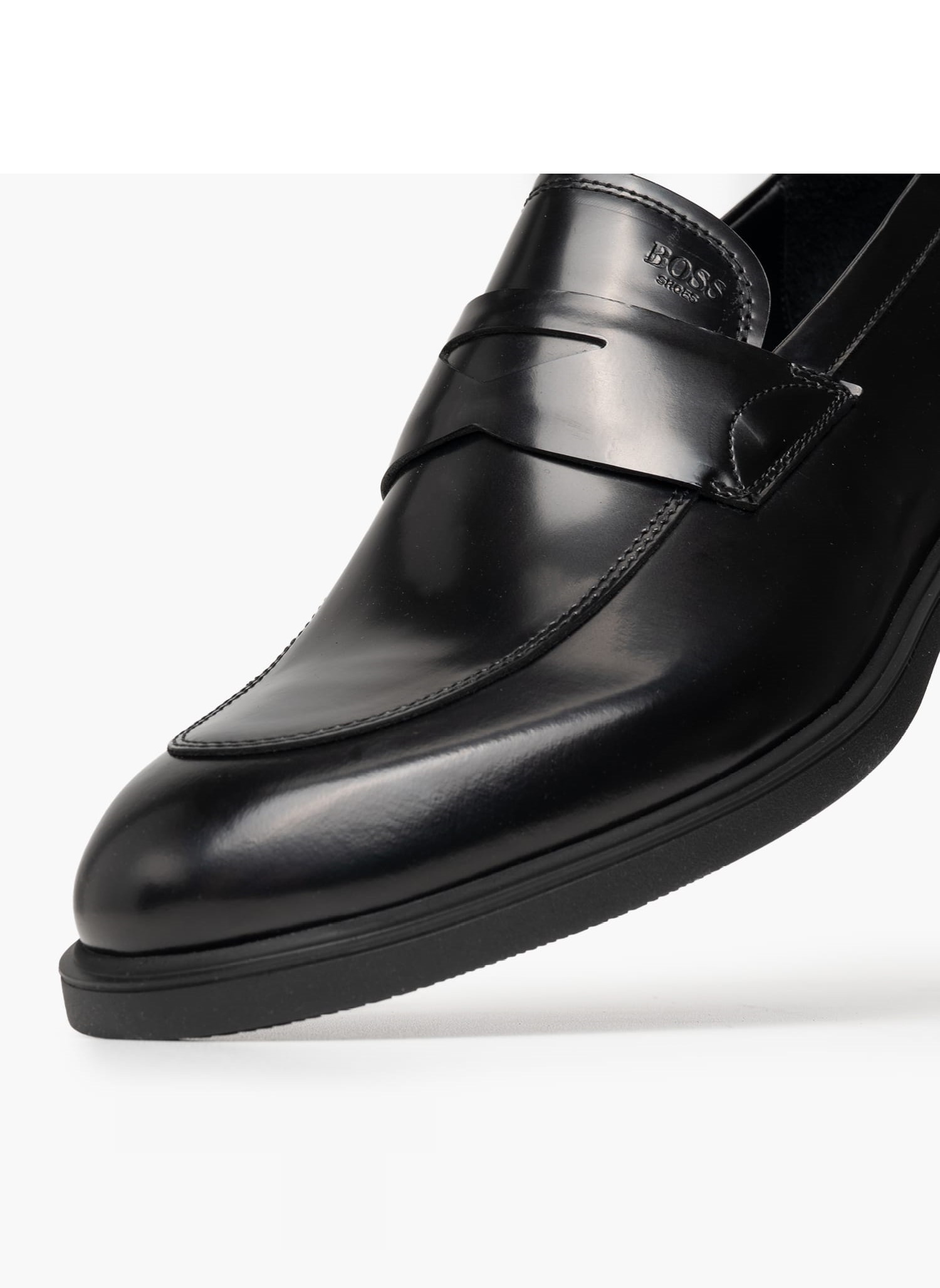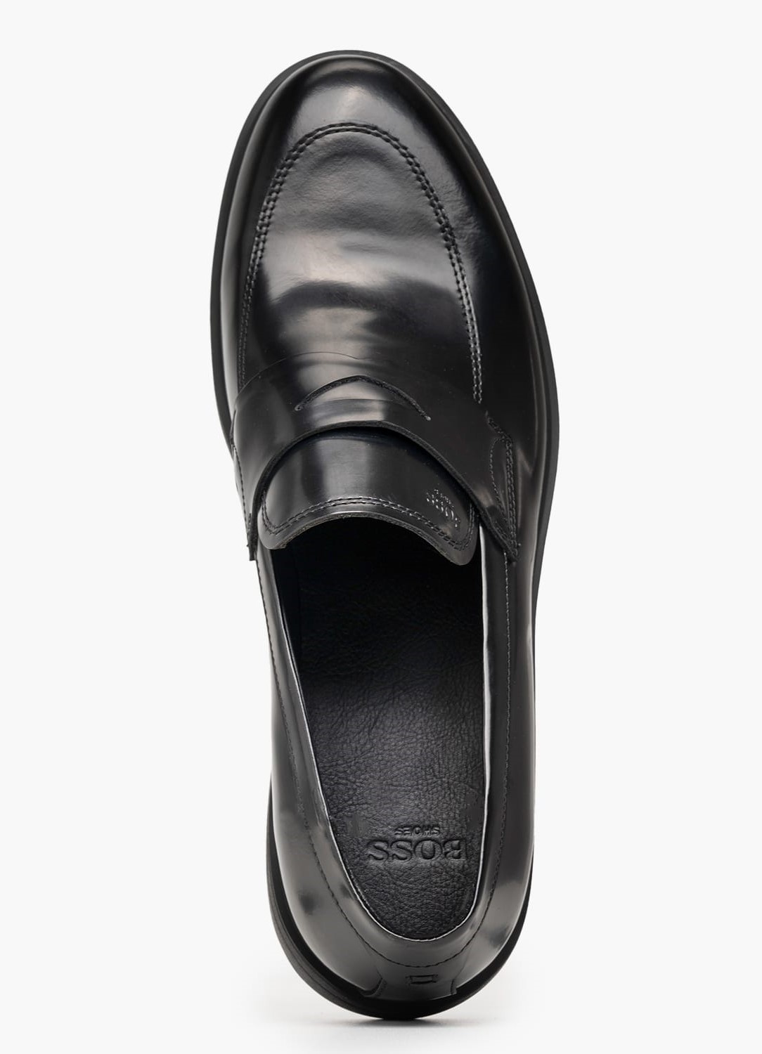 Μαύρα δερμάτινα loafers της εταιρείας BOSS SHOES. Σόλα από δέρμα και λάστιχο για άνετο βάδισμα, ιδανικό για κάθε περίσταση.