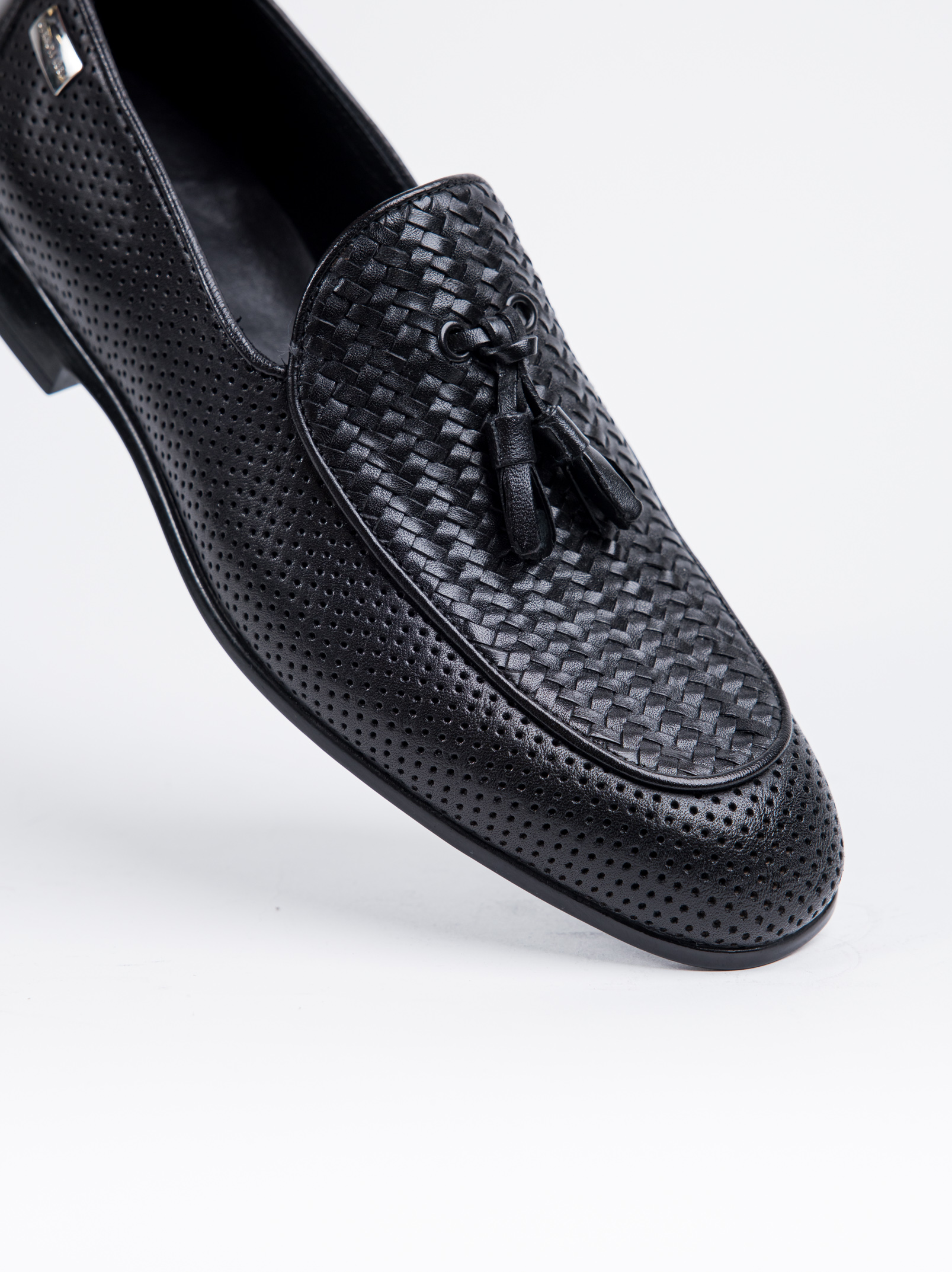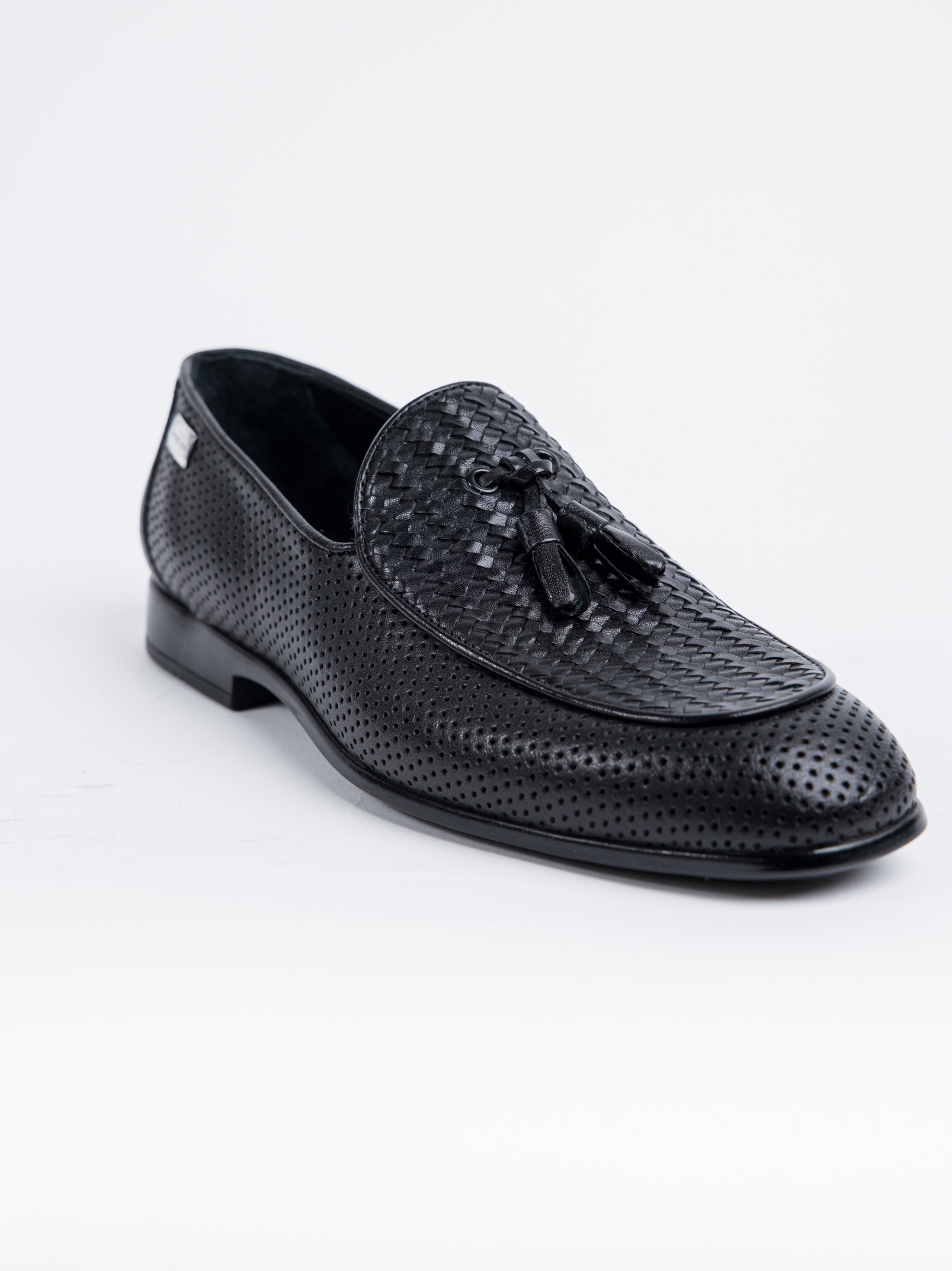 Δερμάτινο μαύρο πλεκτό μοκασίνι loafer με καμπανάκια ιδανικό για κάθε περίσταση.
