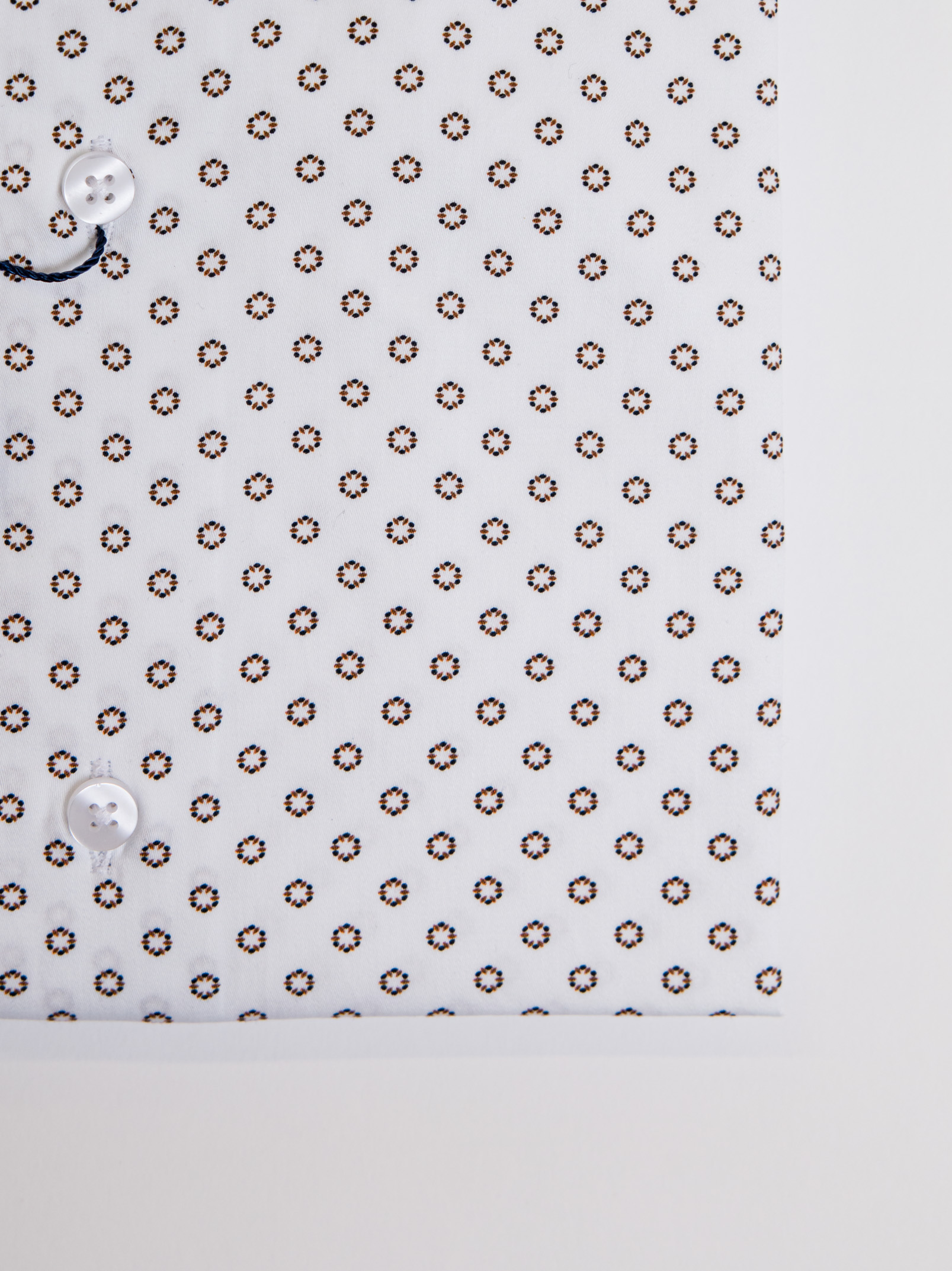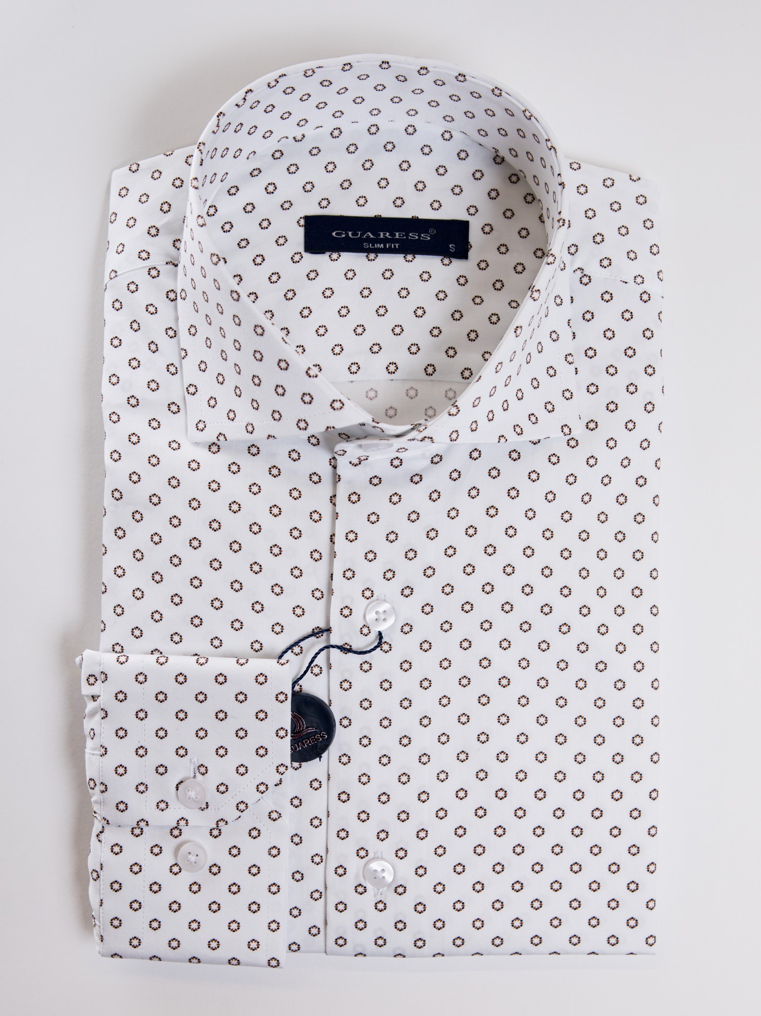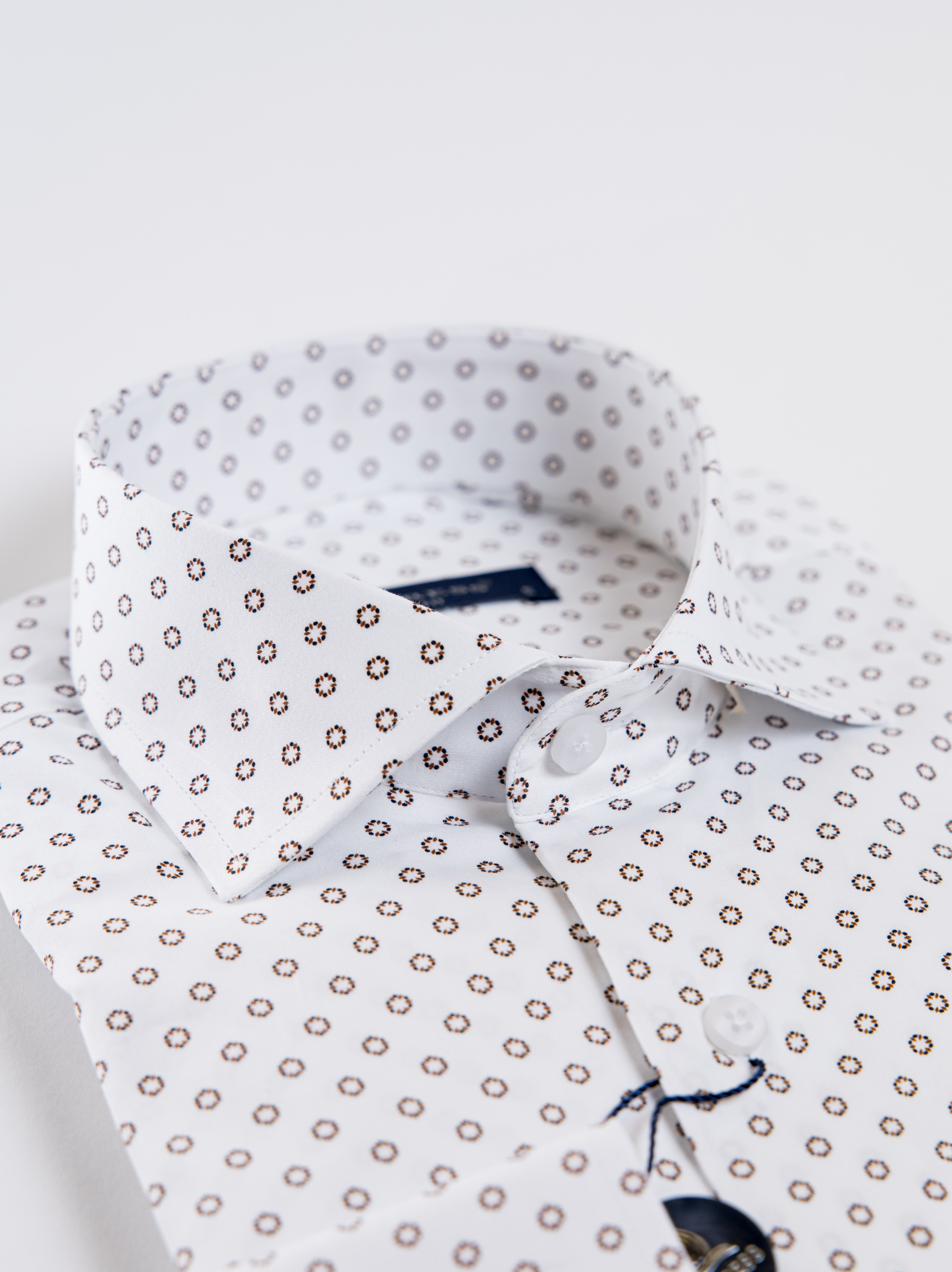 Μακρυμάνικο λευκό πουκάμισο με καφέ σχέδιο,με rex γιακά σε στενή γραμμή.