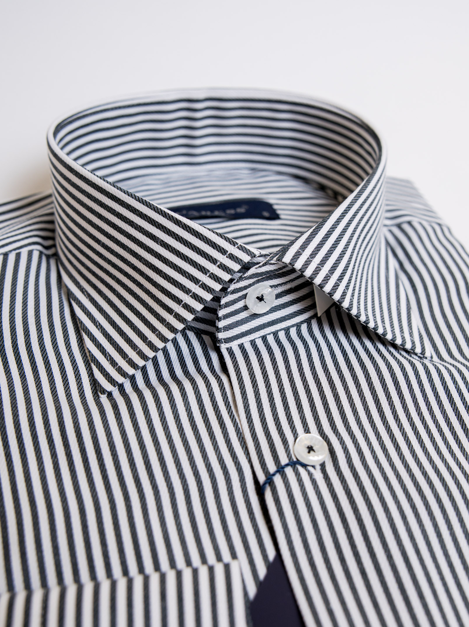 Μακρυμάνικο πουκάμισο με μαύρη ρίγα,με rex γιακά σε στενή γραμμή.