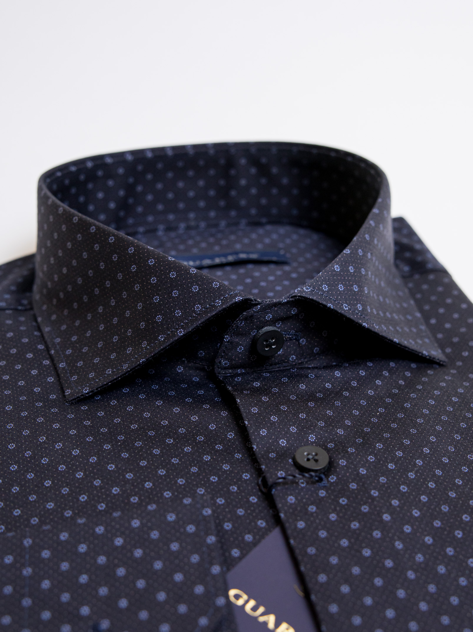 Μακρυμάνικο μπλε πουκάμισο με μικροσχέδιο σιέλ,με rex γιακά σε στενή γραμμή.